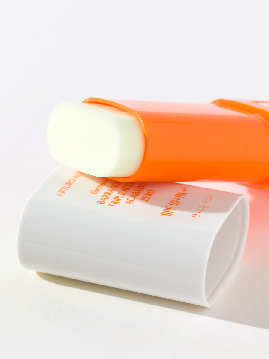 Aplicar generosamente sobre la piel seca, directamente con el stick, en rostro, contorno de ojos, labios o zonas específicas a proteger (manchas, cicatrices, tatuajes). Reaplicar con frecuencia, incluso sobre el maquillaje. Evitar una exposición prolongada al sol.