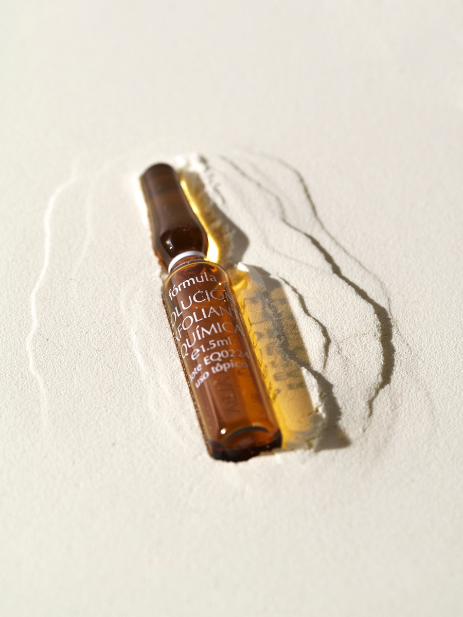 Ampollas de solución ácida exfoliante con acción renovadora del estrato córneo. Su uso frecuente de forma semanal favorece una piel con una textura homogénea. Su acción despigmentante es eficaz para todo tipo de manchas instaladas. Eficaz como tratamiento antiarrugas e iluminador.